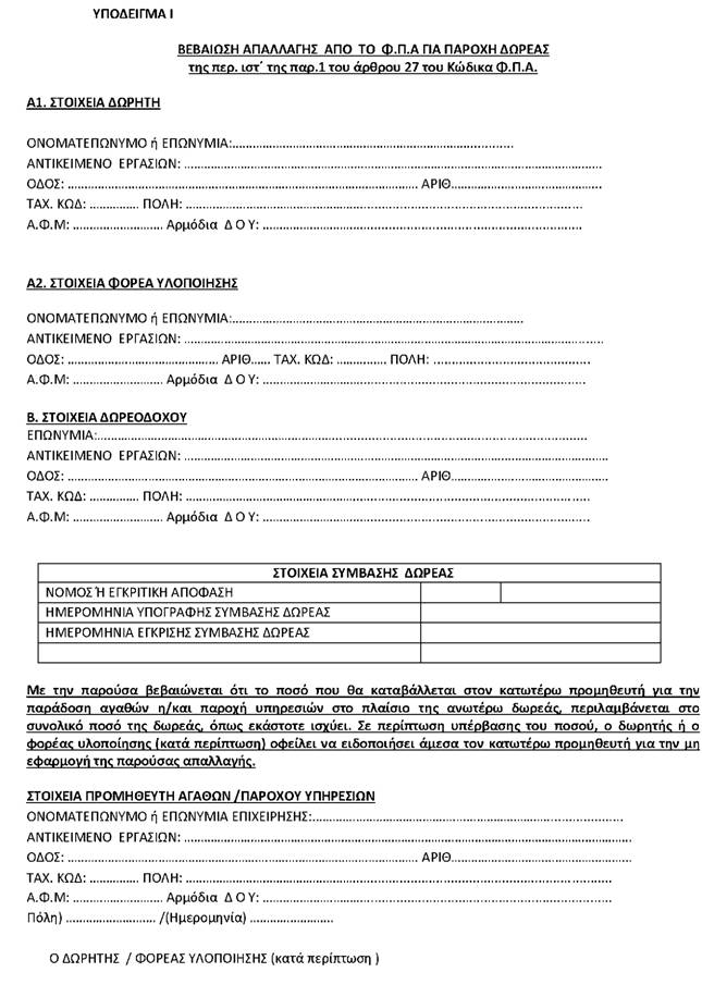 για παροχή δωρεάς της περ. ιστ' της παρ.1 του άρθρου