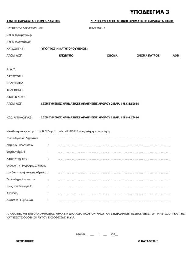 παρόντος άρθρου. Το σχετικό αποδεικτικό προσκομίζεται στο Ταμείο Παρακαταθηκών
